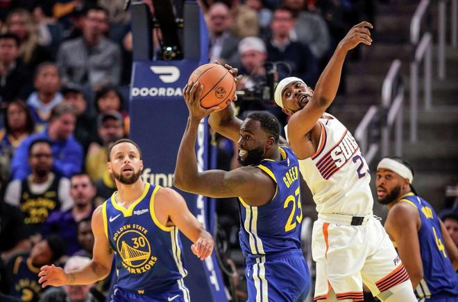 勇士与太阳的比赛,也战得难解难分。在库里的带领之下,勇士实现了全民皆兵和内外开火,并一度将分差扩大至25分。