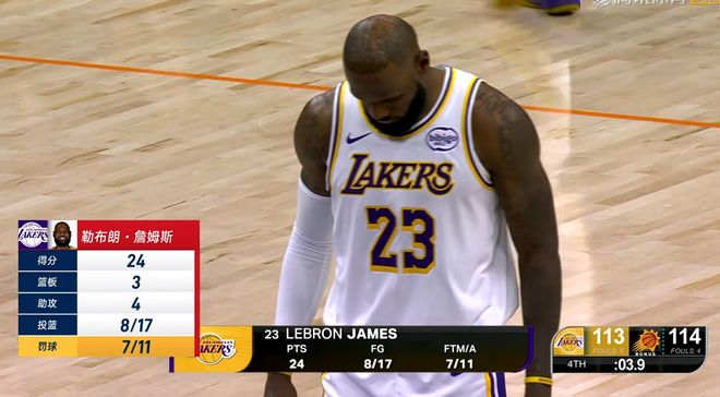 本来太阳队已经完成逆转,落后20分反超湖人了,但是硬生生被裁判吹死了,真的是见都没见过,甚至这还是他们的主场。最后时刻,太阳队由狄龙布鲁克斯投中三分,而且被詹姆斯撞倒在地,这应该是个3+1。